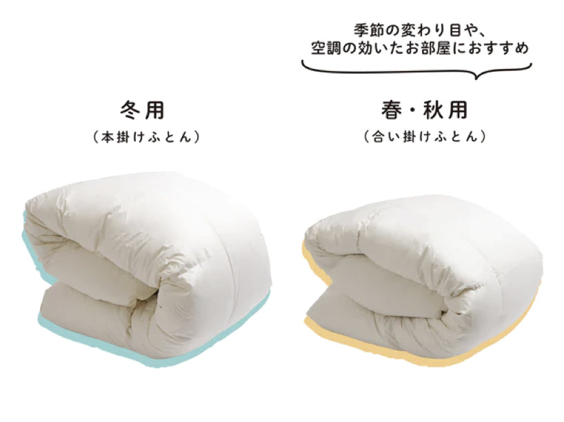 「合掛けふとん」は、春や秋の季節の変わり目での使用がおすすめです。
