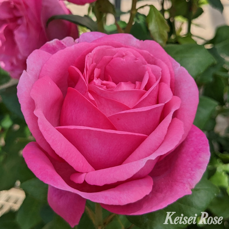 ボリュームのあるピンク色の大輪花に、ダマスクと芳醇なフルーツ香を含む香りが素晴らしいバラです。耐病性も高く、濃くきれいな照葉と花のコントラストが美しく、香りと強さを兼ね備えています。秋に勢いのあるシュートが伸びますが、冬剪定で切り戻せば春にはきれいな樹形を保ちます。花名は女性の名前から。2018年ADR認証、他多数受賞。